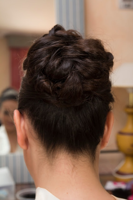 Empiezo hablando de la parte que me toca y es de el peinado.En la prueba le hice un recogido mas princesita que ella era a idea que tenía.El complemento que llevaba era una tiara muy bonita,y le hice mas bien un recogido alto con bucles arriba y un poquito de montera,pero poca ya que ella es muy alta y no podía meterle mucho mas volumen arriba.